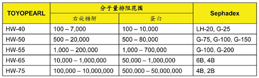 東曹的Toyopearl HW填料骨架為含羥基的親水性聚甲基丙烯酸樹脂,由于不含糖基,與其他做多糖的填料相比,不會和糖類樣品發(fā)生非特異性相互作用。