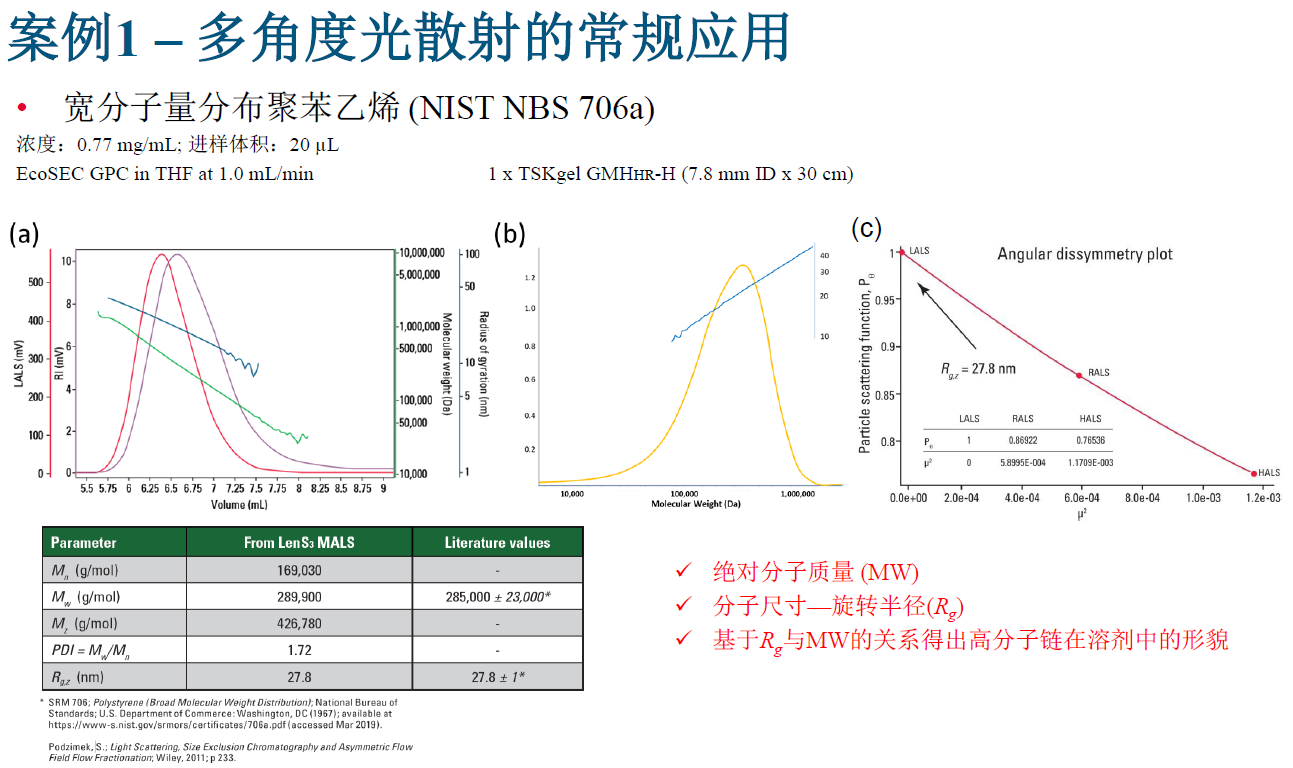 ? ? ? ?光散射是測(cè)量聚合物、蛋白質(zhì)、多肽化合物以及其他多種復(fù)雜結(jié)構(gòu)大分子的絕對(duì)分子量以及尺寸的最常用表征手段。通過(guò)與HPLC或者GPC聯(lián)用,光散射可作為表征和探索大分子的結(jié)構(gòu)、構(gòu)型和組成的利器 !