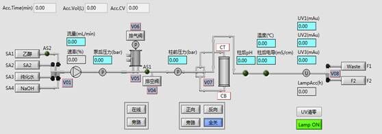 層析系統(tǒng)軟件符合新版GMP規(guī)范,采用圖形化界面、全自動(dòng)操作,簡(jiǎn)明扼要,任何操作及狀態(tài)均可實(shí)時(shí)顯示在主界面狀態(tài)欄中,自動(dòng)化程度高。結(jié)合了大量的容錯(cuò)性設(shè)計(jì),貼合生產(chǎn)實(shí)際,降低了對(duì)研發(fā)人員的技能要求。