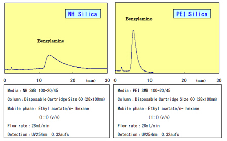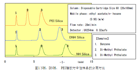 PEI是在球形硅膠表面鍵合大分子的氨基多聚物。富士的NH和DNH硅膠在分析和工業(yè)領(lǐng)域有著廣泛的應(yīng)用,主要用于分離堿性化合物,而這些堿性化合物在裸硅膠上會(huì)吸附的很嚴(yán)重。