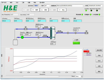 2)可設置進料壓力、TMP及透過端UV報警值,超出范圍即停泵,防止目標物損失,保證工藝可控性。