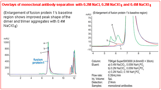 3. TSKgel SuperSW柱有內徑為4μm的顆粒,能實現(xiàn)最高分辨率。窄至4.6mm內徑的柱能在一定量的樣品質量范圍內提高高靈敏度。