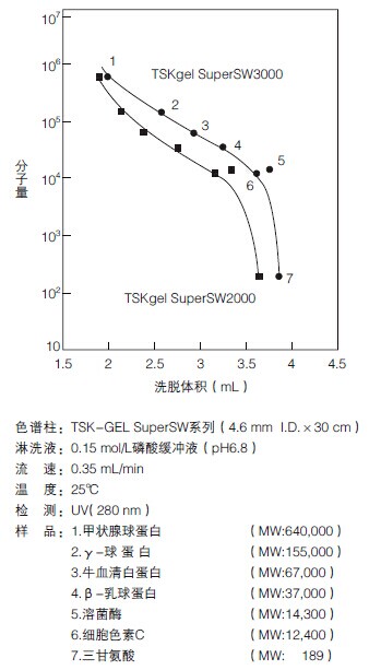 1. TSKgel SW-型填料由含二醇基官能團的剛性球形硅膠顆粒組成。