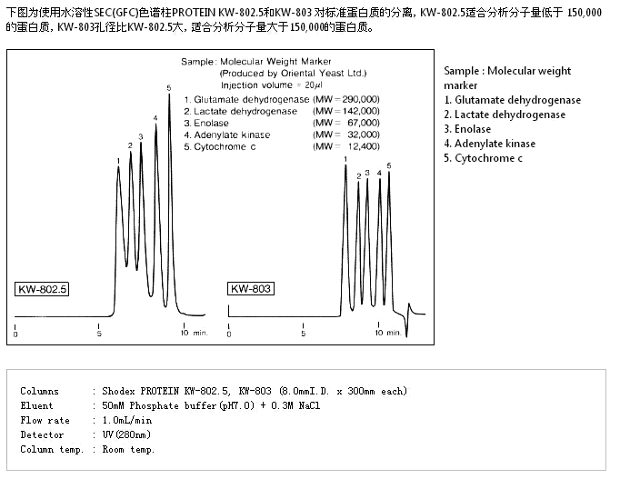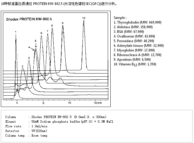 蛋白質(zhì)的分子量范圍(流動(dòng)相 :磷酸緩沖液)