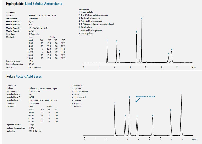 1. 在增強極性化物保留能力的同事,維持了對中等和強疏水化合物的適度保留能力。